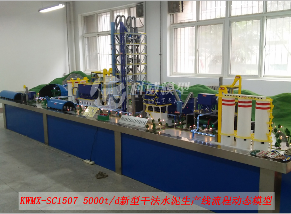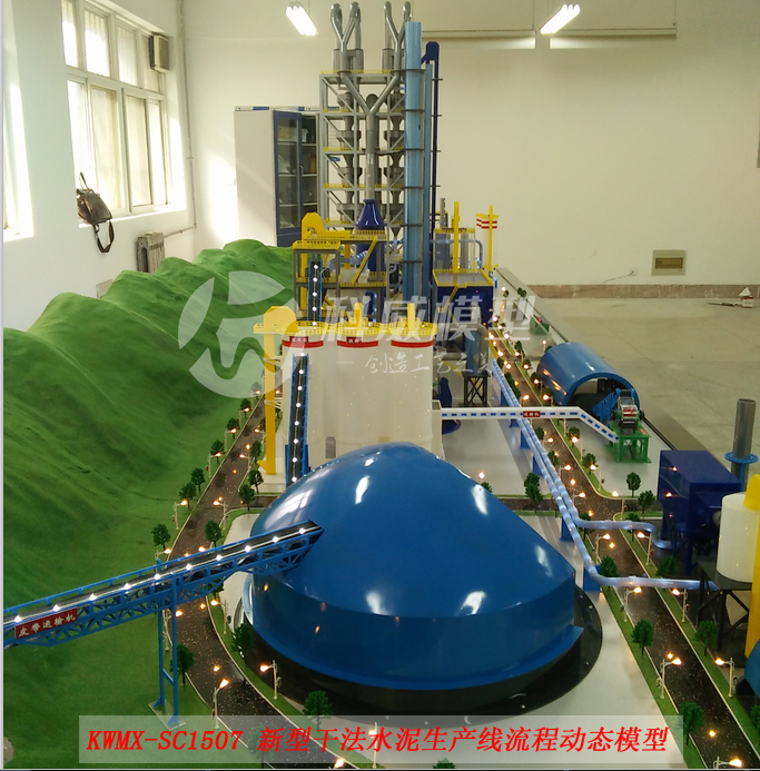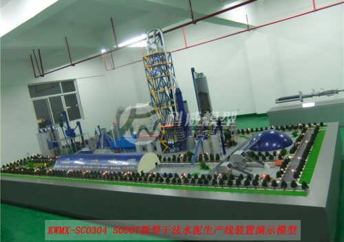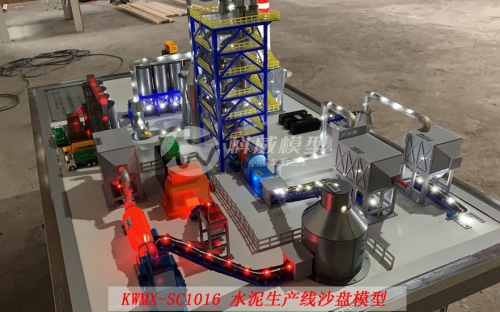該模型根據客戶的需求,并參照新型干法水泥生產線廠區(qū)建筑總平面布置圖,按1:30(約)的模型比例微縮進行制作,模型可以完整顯示整個水泥生產線工藝流程,包括廠區(qū)環(huán)境以及工廠各單元生產設備的分布設施整體展現。